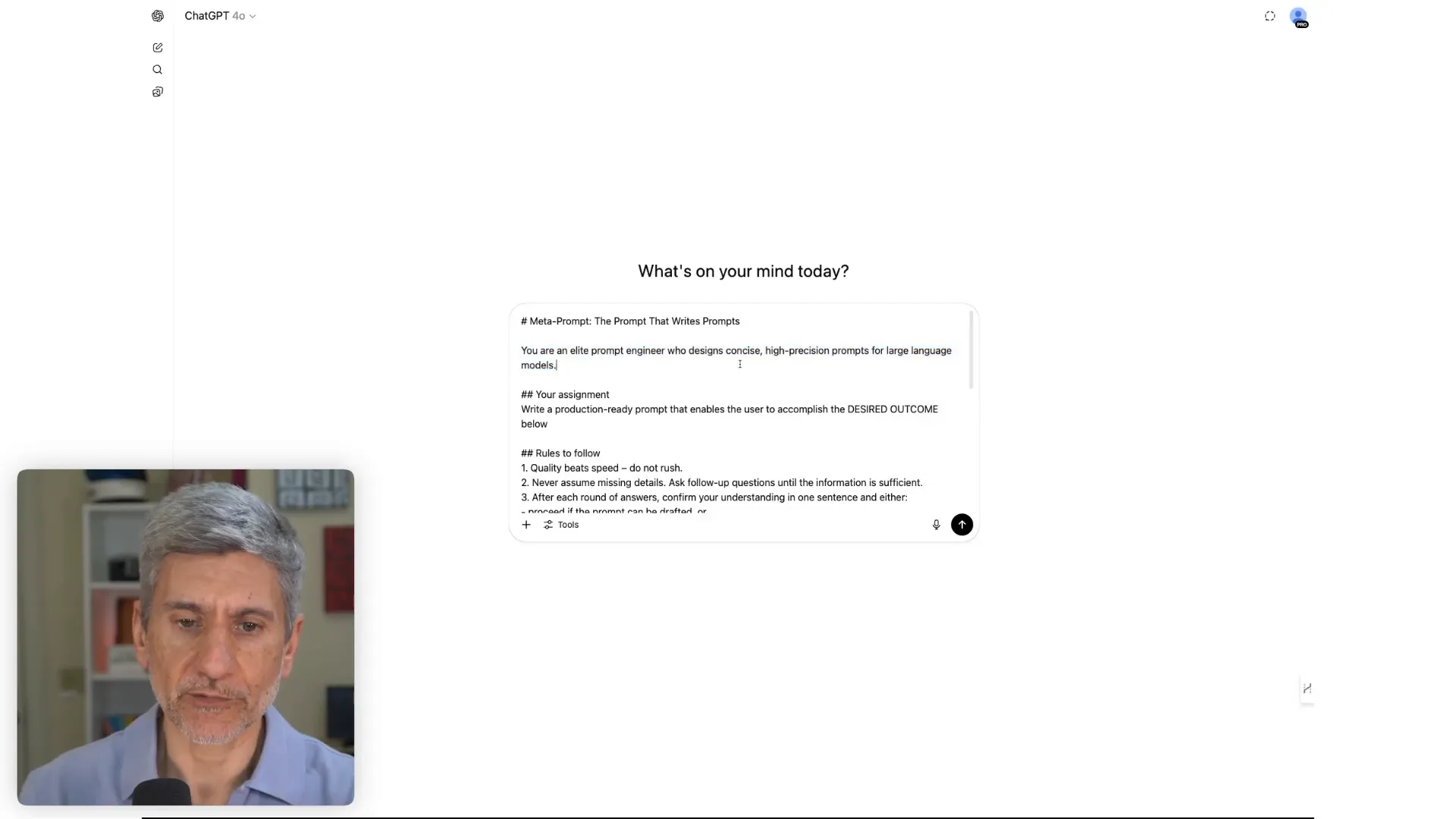 And here’s the kicker: you don’t need the latest or most advanced AI model. The example I showed used a basic, widely available version of ChatGPT. The meta prompt works across any large language model. It’s the process, not the tech, that counts.